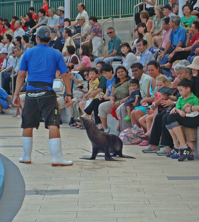 The fur seals performed after the dolphins and did lots of cute tricks both in and out of the water to entertain the crowd. Above, one of the seals was walking along, “barking” at the crowd. And below, I filmed a really short movie to show how fast the seals can swim.
