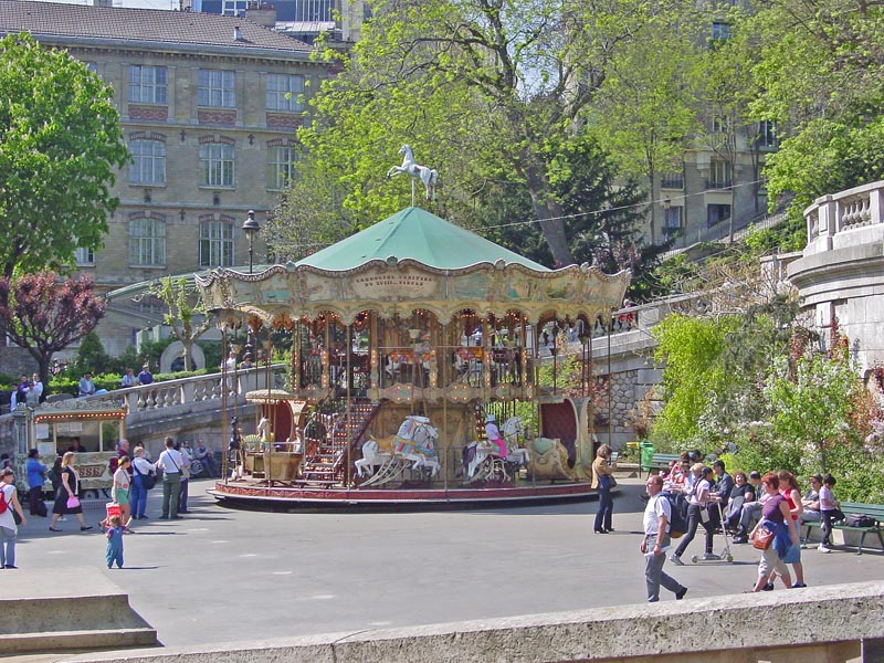 I was incredibly lucky in terms of the weather during this visit—my photos turned out really well, and these photos of the basilica look as though they could be postcards. The top photo is the basilica itself, and the photo above is the basilica and the butte Montmartre (or the Montmartre hill). The photo below is of the lovely old carousel at the base of the basilica area.